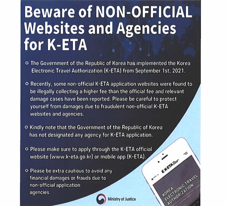 Alle buitenlanders die zonder visum naar Korea kunnen reizen, moeten echter eerst de digitale machtiging verkrijgen op het `` K-ETA ''-systeem dat ook op dezelfde dag wordt gelanceerd: https://www.k-eta.go.kr/ portal / apply / index.do? locale = EN