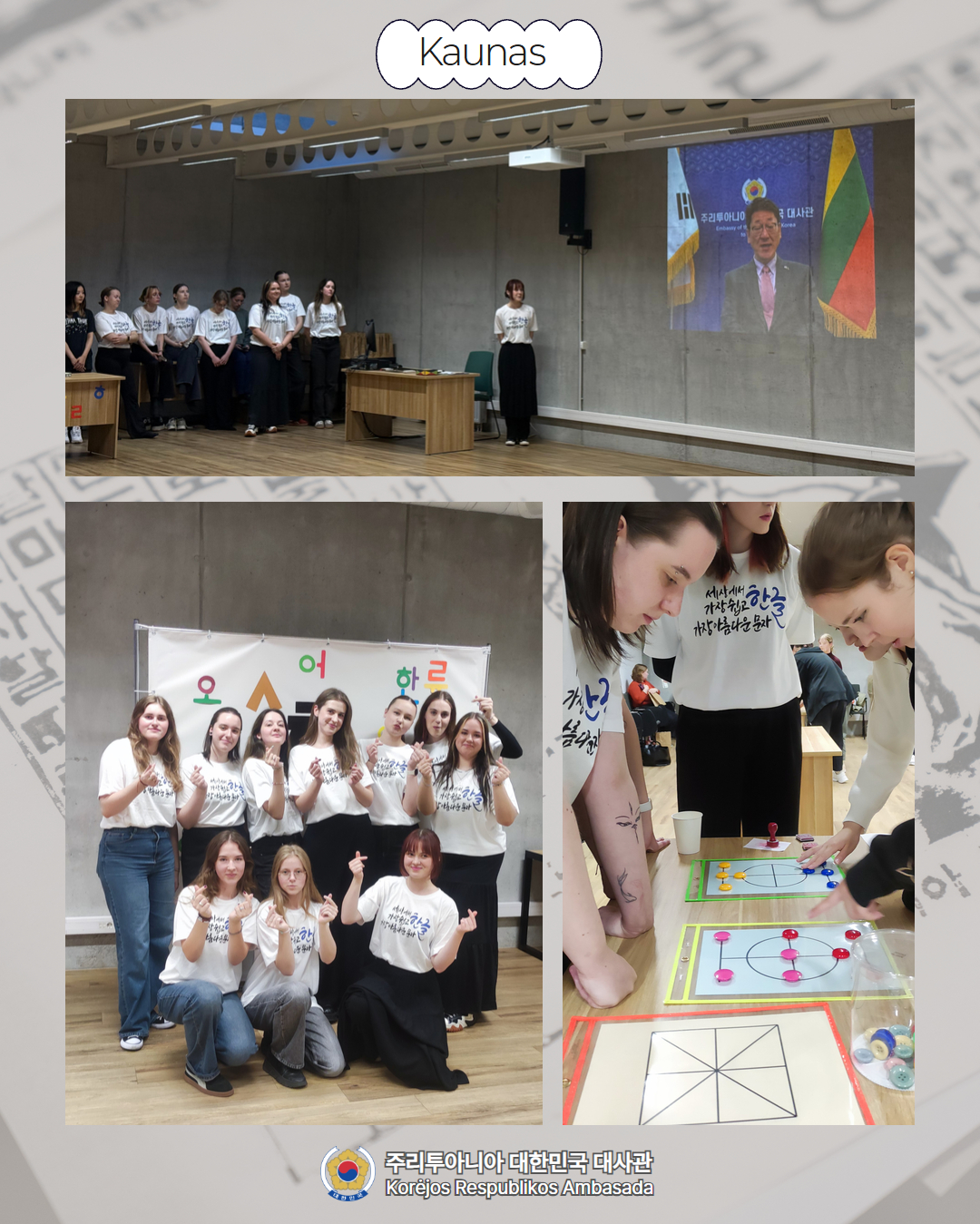 카우나스 세종학당은 2018년 카우나스 비타우타스 마그누스 대학교(VMU) 아시아연구센터에 설립되었으며, 최근 인하대학교와 연계하여 운영되고 있다. 이번 한글날 행사는 카우나스 최대 한국 문화 동호회 ‘한류(Hallyu)’가 주도적으로 준비하였다.